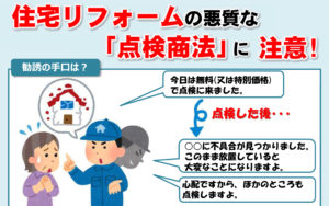 普段家のどこがどうなっているか気にすることも少ないのも事実です。こんな商法にだまされない様に会社さんや工務店さんと連絡を取り合って頂けたら幸いです。