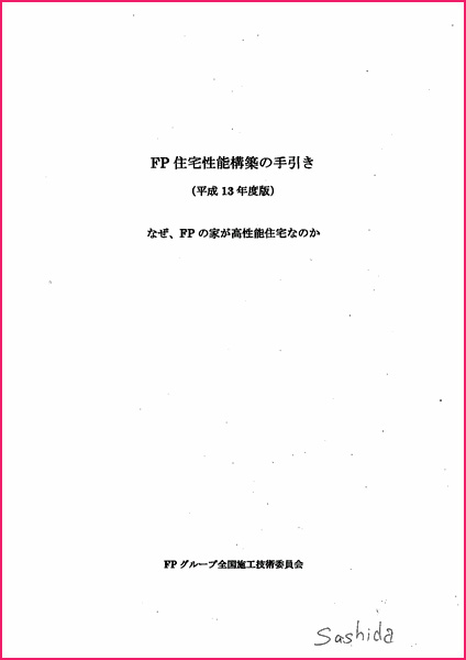 ↑ この画像(クリックしてみてください。) 「快適で省エネな住まい」を提供する為の研修本の表紙です。H10年頃から始まった「性能研修会」、この本はH13年度版。時が過ぎても「快適な住まい」の造り方は現在も変わりません。