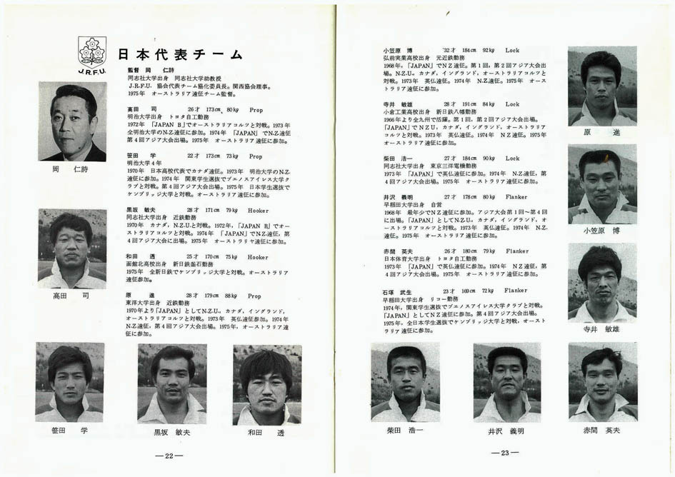 実はこの本、今回出場したイギリスのTeam「ウェールズ」が1975年(S50)に日本チームとのテストマッチに来日した際の「ラグビーマガジン」誌の別冊版なんです。私も部活仲間・顧問氏と国立競技場で行われた第2戦を観に行き世界のレベルに堪能を覚え、競技場全体が一体となった歓声は今も忘れません。試合終了後の「ノーサイド」感覚もそのひとつです。