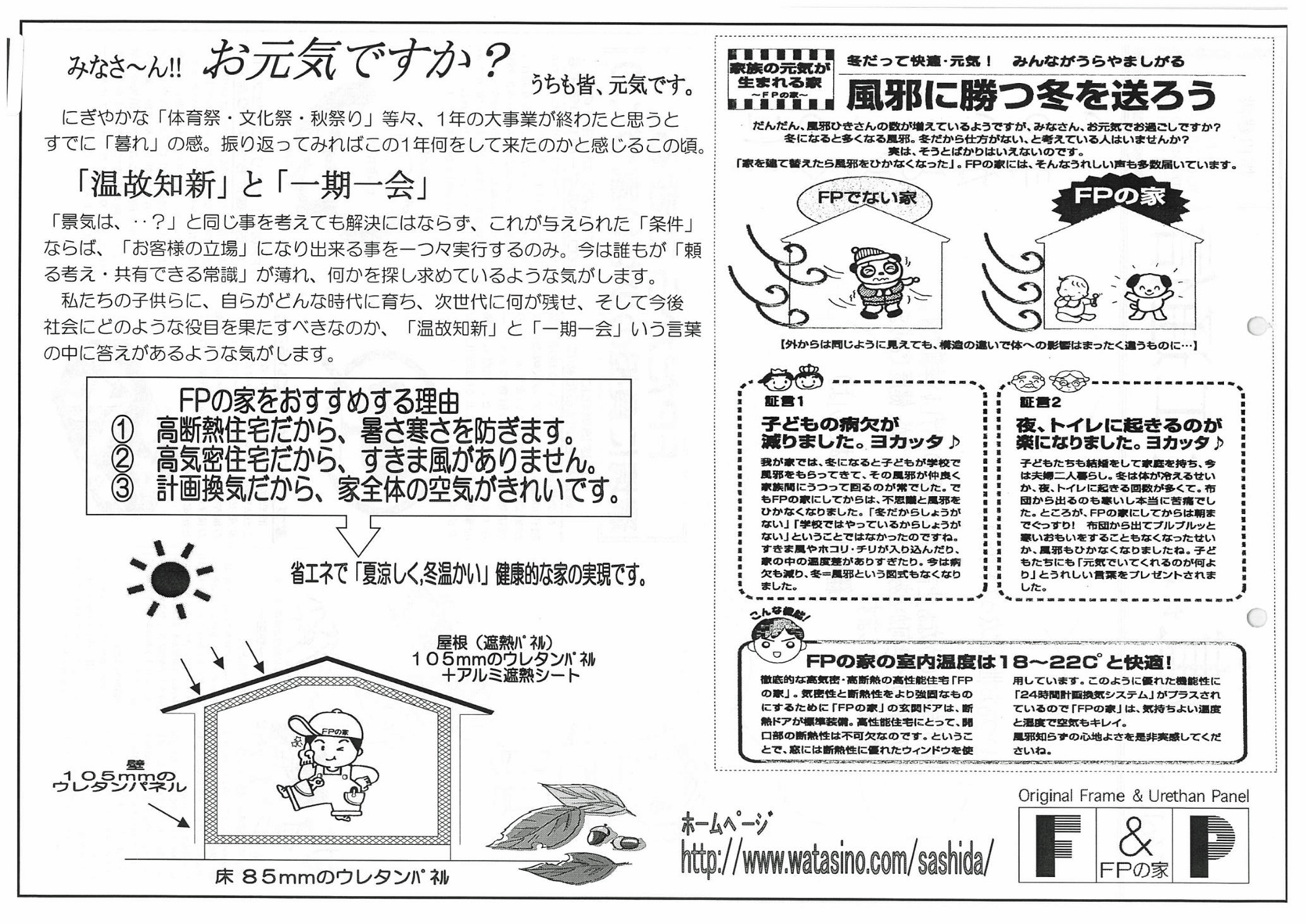 お便り発行のきっかけを作ったのが「FPの家」の家づくり。引っ張り出してきたバックナンバーを見るたびに今もそのまま同じことをお話できる内容とも感じ、やはり人に優しい家づくりが大切ですね。