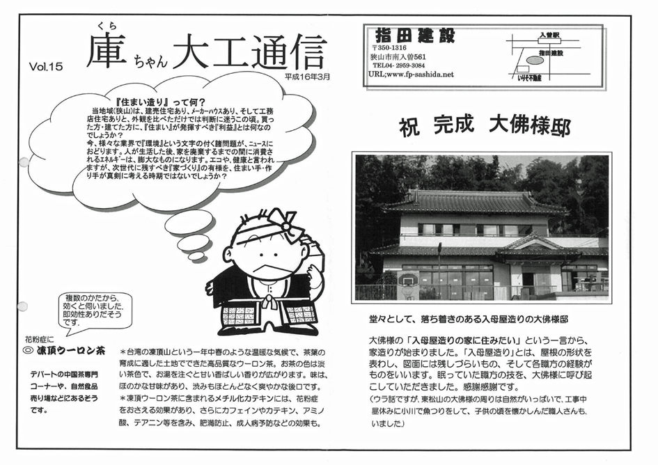 第15号「庫ちゃん大工通信」 (2004 = H16 03)
