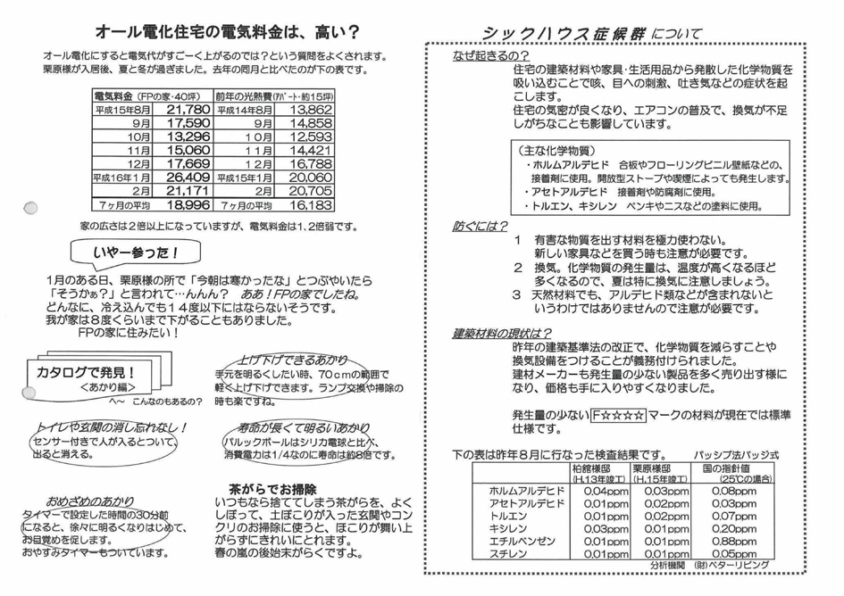 裏面には「シックハウス症候群」。この頃、社会問題化したのでしょう。現状はアレルギー体質の方も多いのではないでしょうか、この事も忘れてはいけませんね。