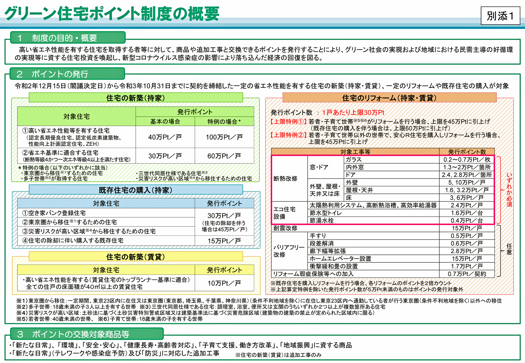 ※ 制度の概要は → (別添付 1) 「グリーン住宅ポイント制度の概要」