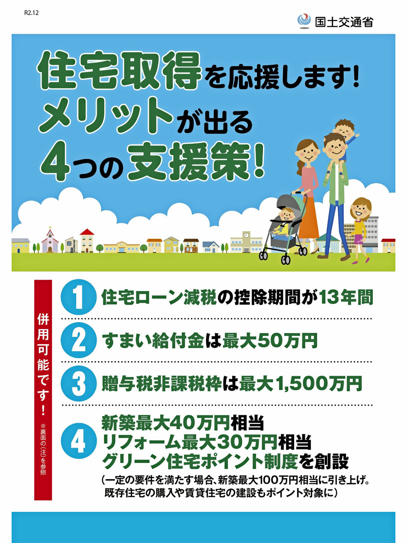 ※色々な優遇がありますよぉ!と言うチラシ → (別添付 3) 「住宅取得 4つのメリット」