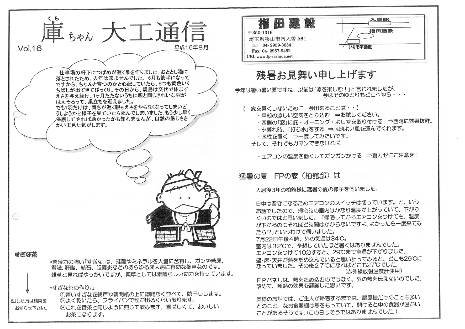 第16号 「庫ちゃん大工通信」 (2004 = H16 08)