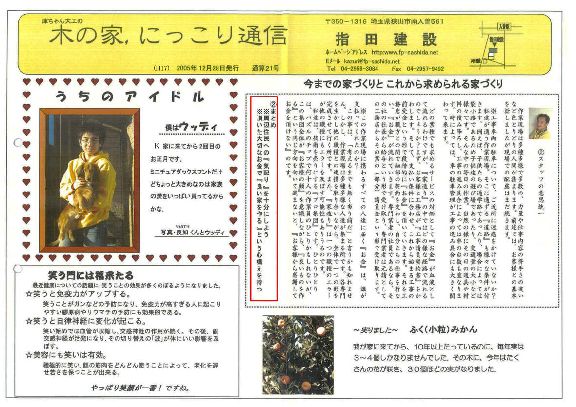 第21回 「木の家、にっこり通信」 (2005 = H17 12)