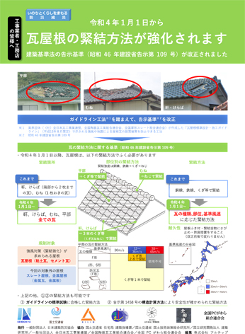 2022 (R4) 1月1日から瓦の「留めつけ」方法が強化されます。