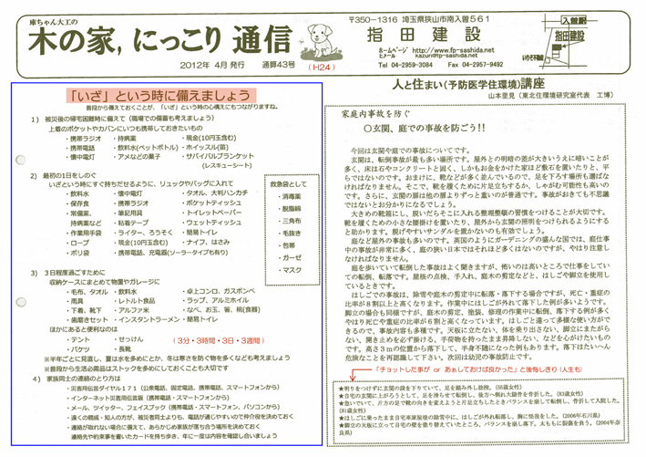 第43回 「木の家、にっこり通信」 (2012 = H24 04)