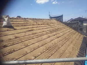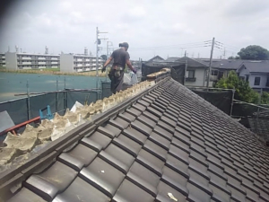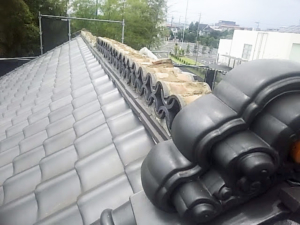 今回やり直しに当っては、一般の平部・大棟も含め耐震仕様で葺き替える予定です。