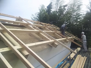 言い方をします。今回の蔵の小屋組み、組み手材から始まり垂木まで皆の協力により