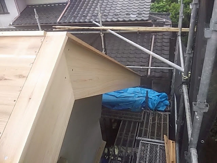 両側に化粧板 (破風板) と野地板を貼り完了です。