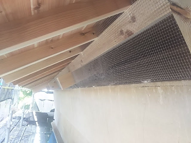 で、併行作業でしたが土蔵屋根と小屋組みの間 (あいだ) には、構造上すき間ができ