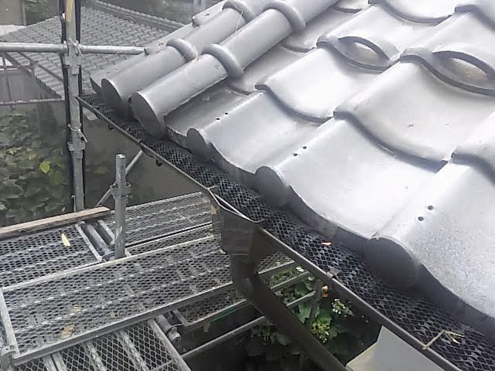 樋を掛け、ここも竹林の「落葉よけ」を取り付けてすべての作業が完了しました。