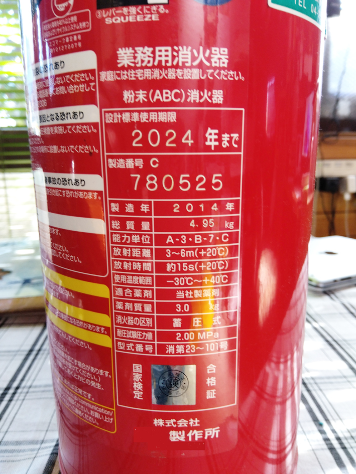 中味の消火剤には「使用有効期限」があることも