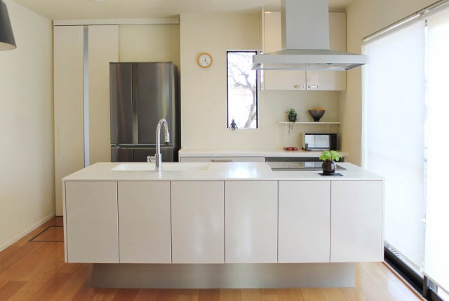 キッチンとリビングを広いオープンキッチンにしたこの空間では近所の奥様がお料理作りを楽しんでいます。